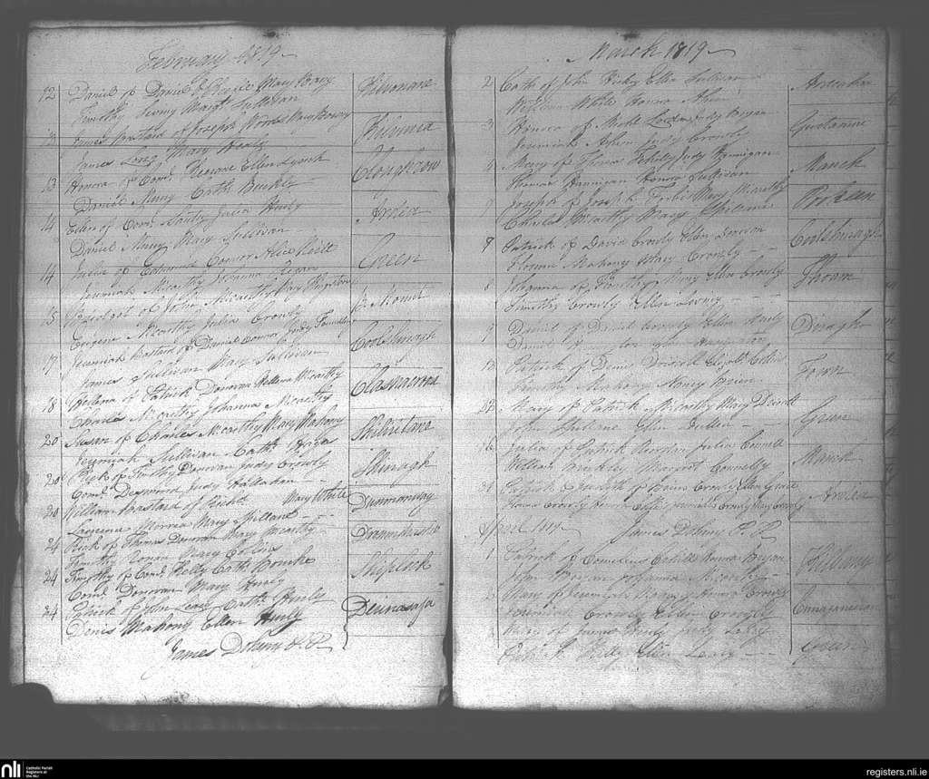 Dunmanway; County of Cork; Diocese of Cork and Ross. Baptisms, Feb. 1819 to Mar. 1819