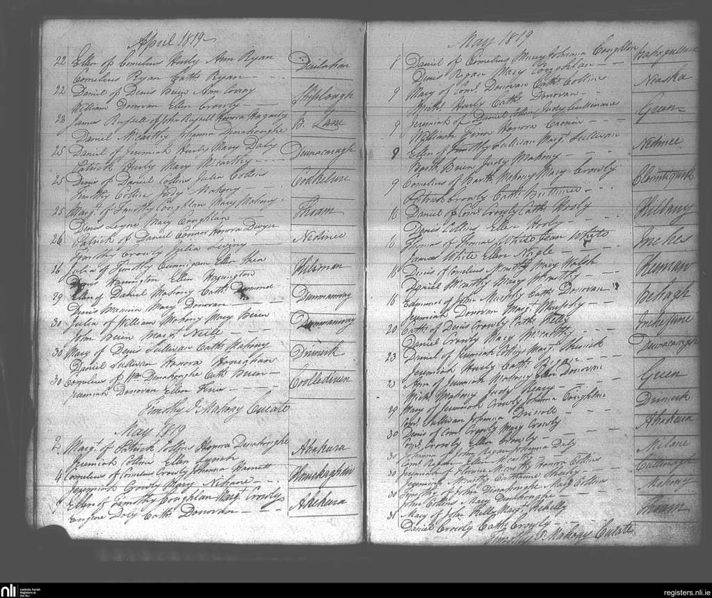 Dunmanway; County of Cork; Diocese of Cork and Ross. Baptisms, Apr. 1819 to May 1819