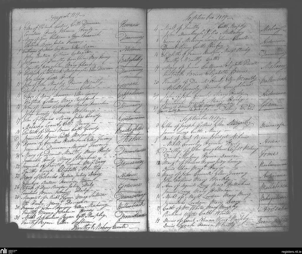 Dunmanway; County of Cork; Diocese of Cork and Ross. Baptisms, Aug. 1819 to Sep. 1819