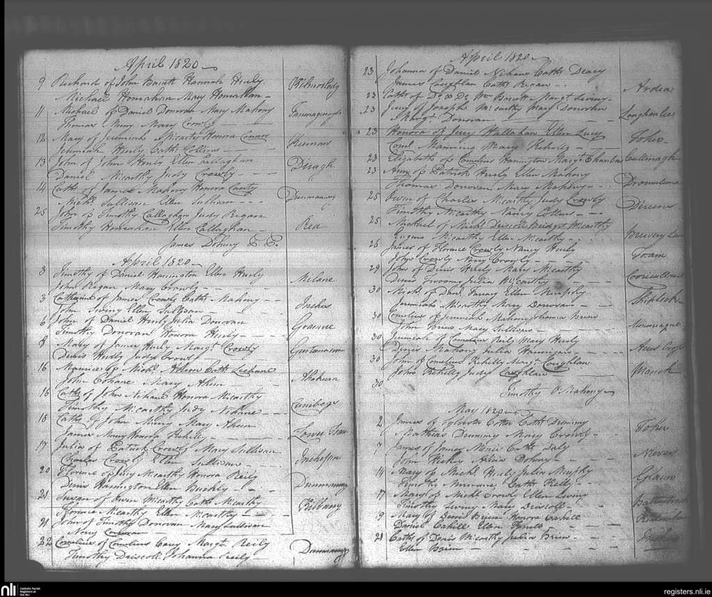 Dunmanway; County of Cork; Diocese of Cork and Ross. Baptisms, Apr. 1820 to May 1820