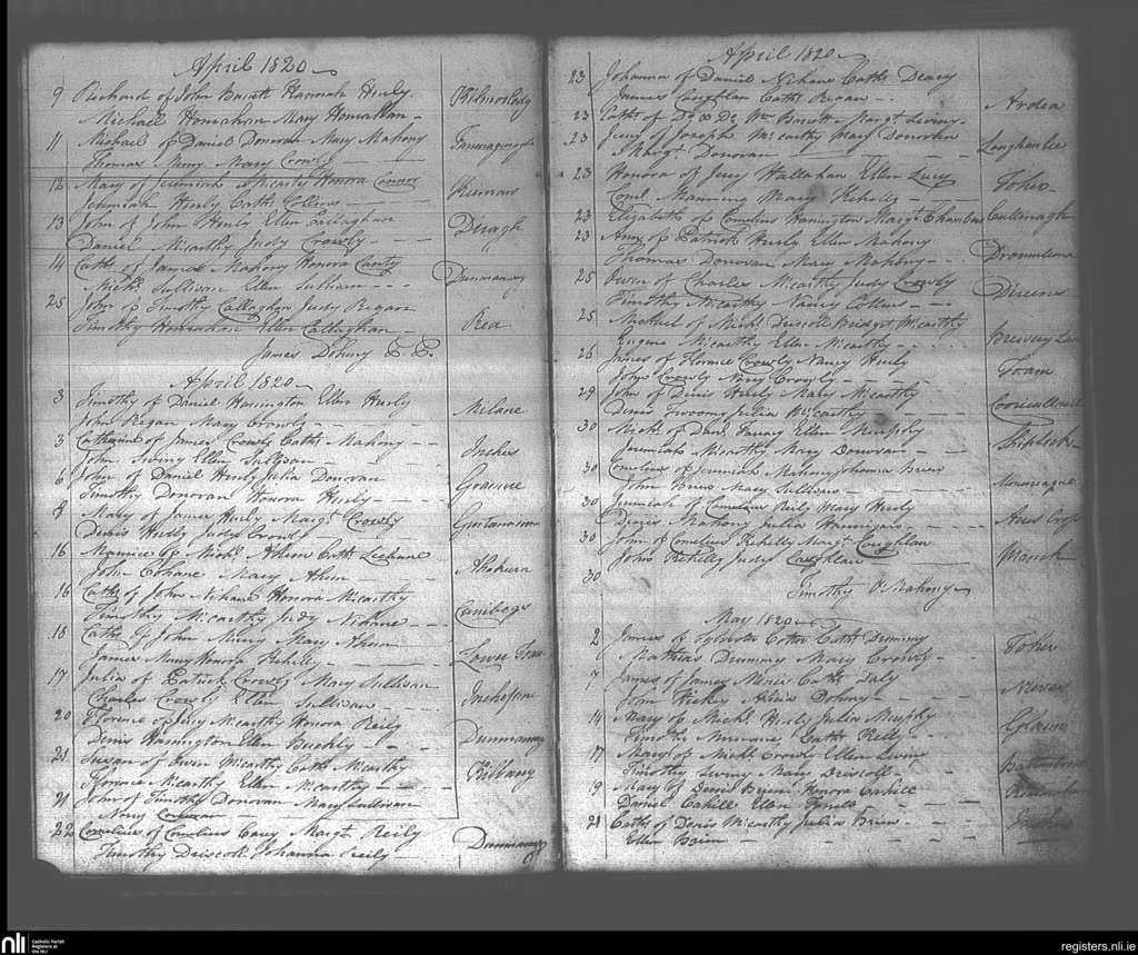 Dunmanway; County of Cork; Diocese of Cork and Ross. Baptisms, Apr. 1820 to May 1820