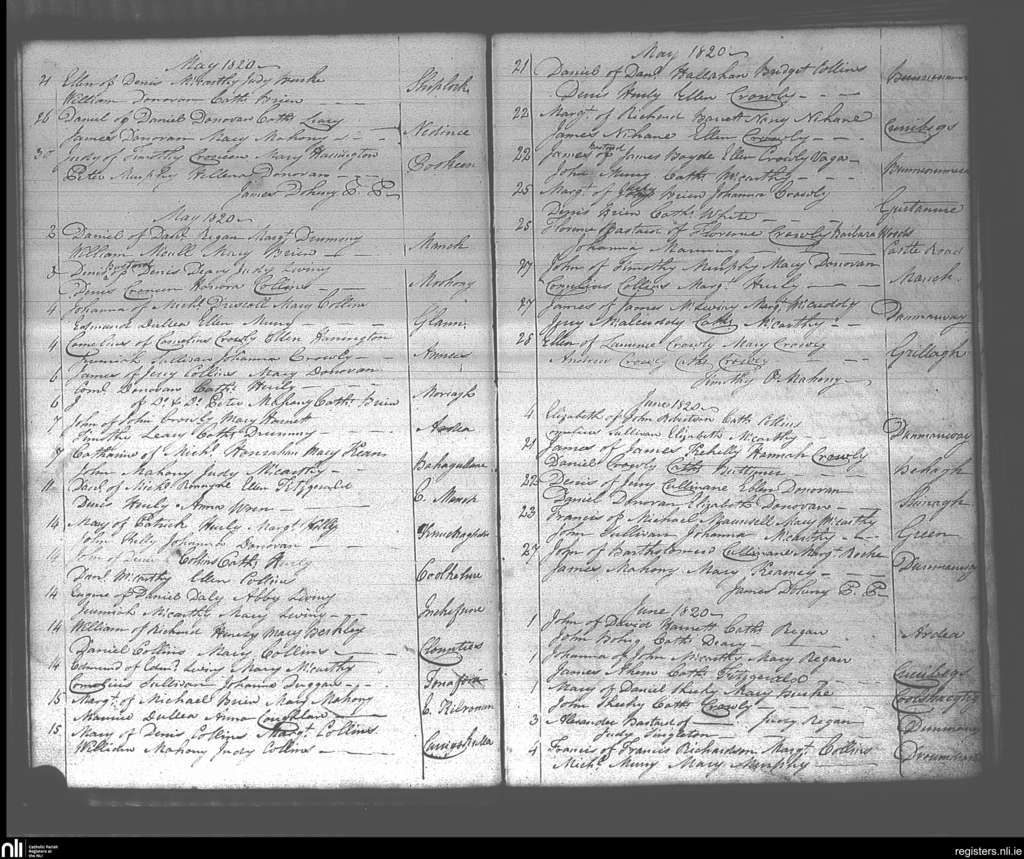 Dunmanway; County of Cork; Diocese of Cork and Ross. Baptisms, May 1820 to June 1820