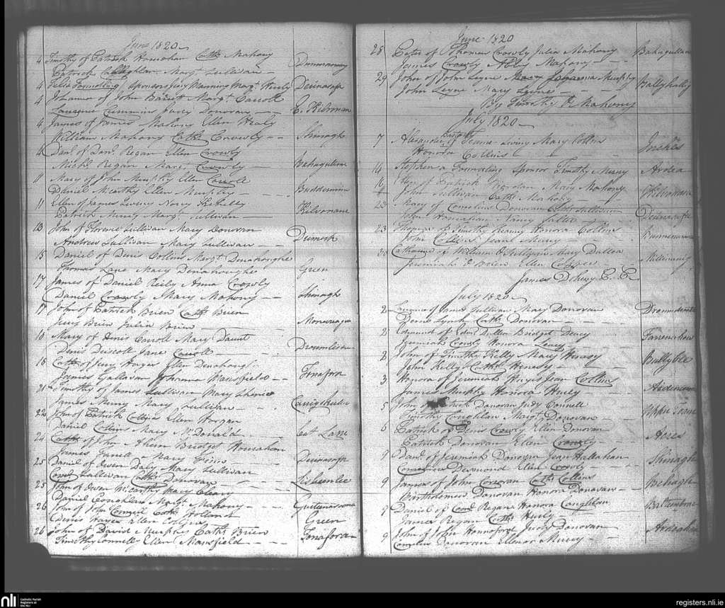 Dunmanway; County of Cork; Diocese of Cork and Ross. Baptisms, June 1820 to July 1820