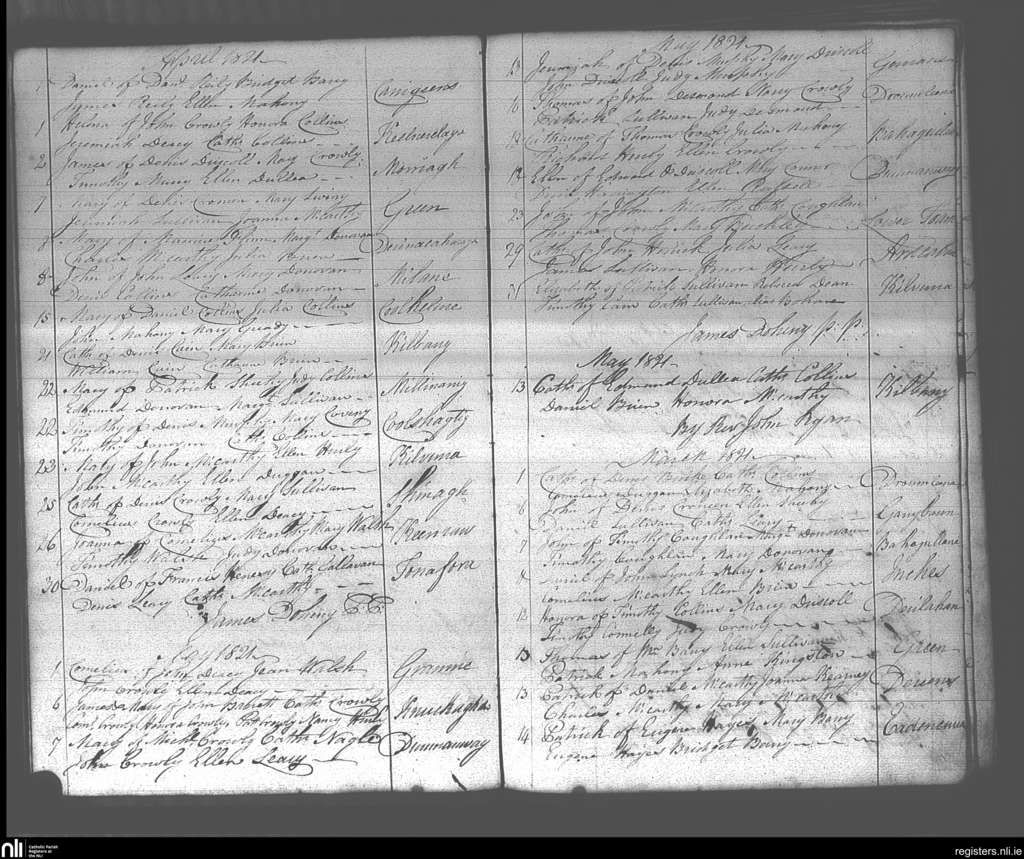 Dunmanway; County of Cork; Diocese of Cork and Ross. Baptisms, Mar. 1821 to May 1821