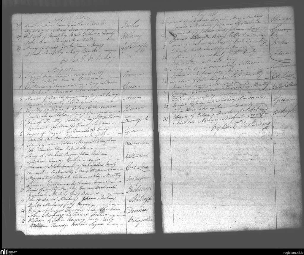 Dunmanway; County of Cork; Diocese of Cork and Ross. Baptisms, Apr. 1821 to May 1821