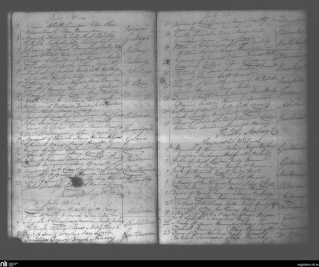Dunmanway; County of Cork; Diocese of Cork and Ross. Baptisms, July 1821 to Aug. 1821