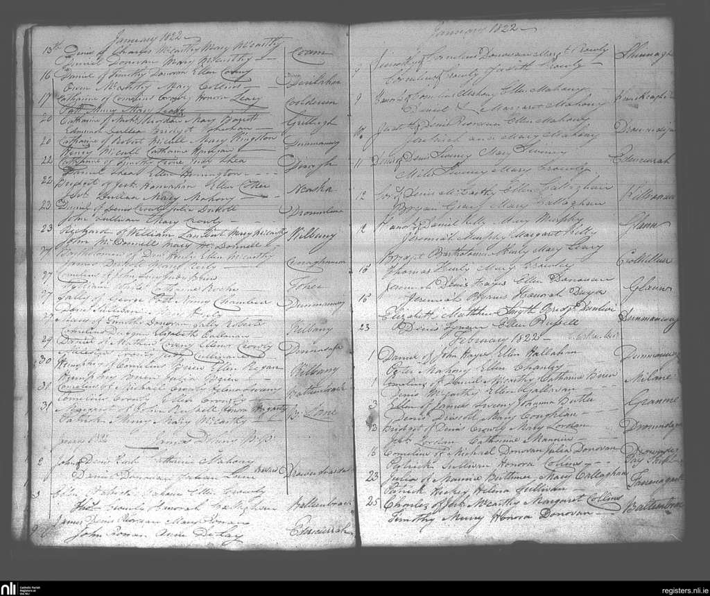 Dunmanway; County of Cork; Diocese of Cork and Ross. Baptisms, Jan. 1822 to Feb. 1822