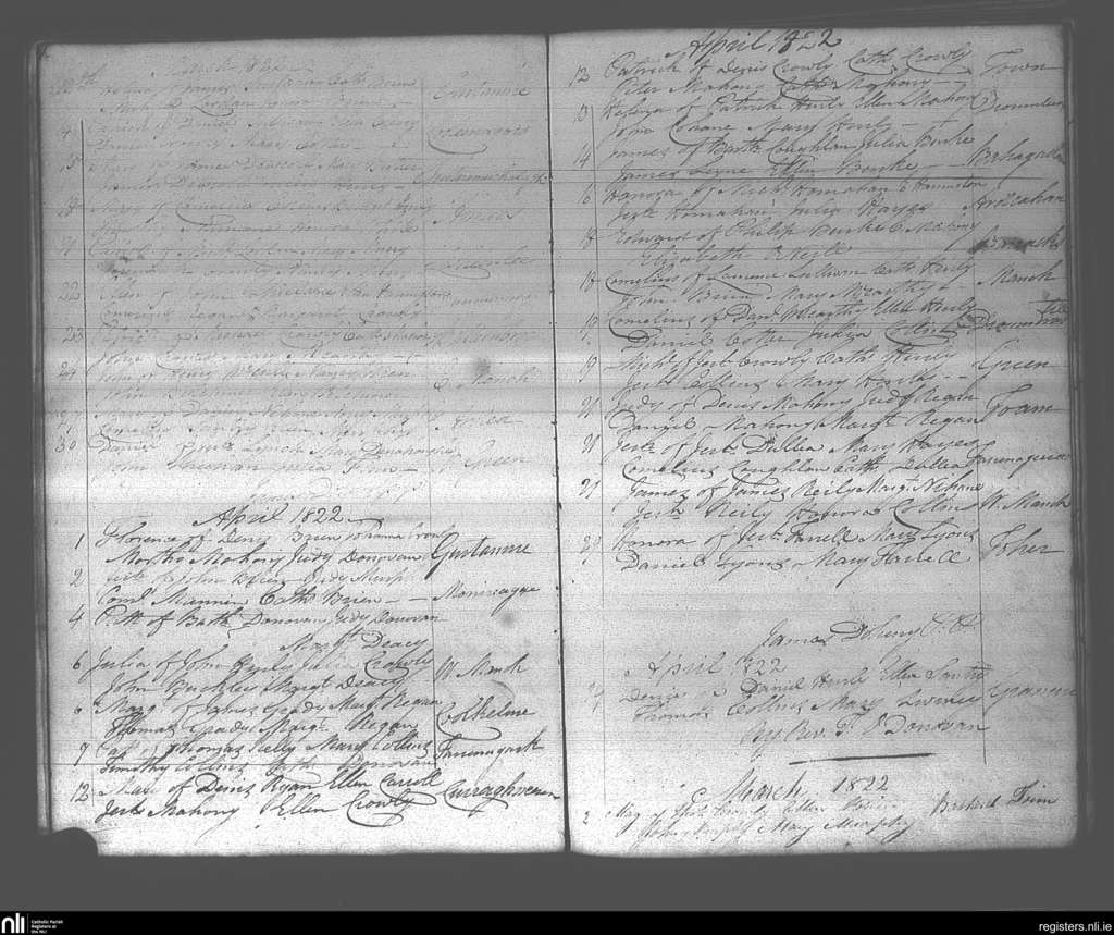 Dunmanway; County of Cork; Diocese of Cork and Ross. Baptisms, Mar. 1822 to Apr. 1822