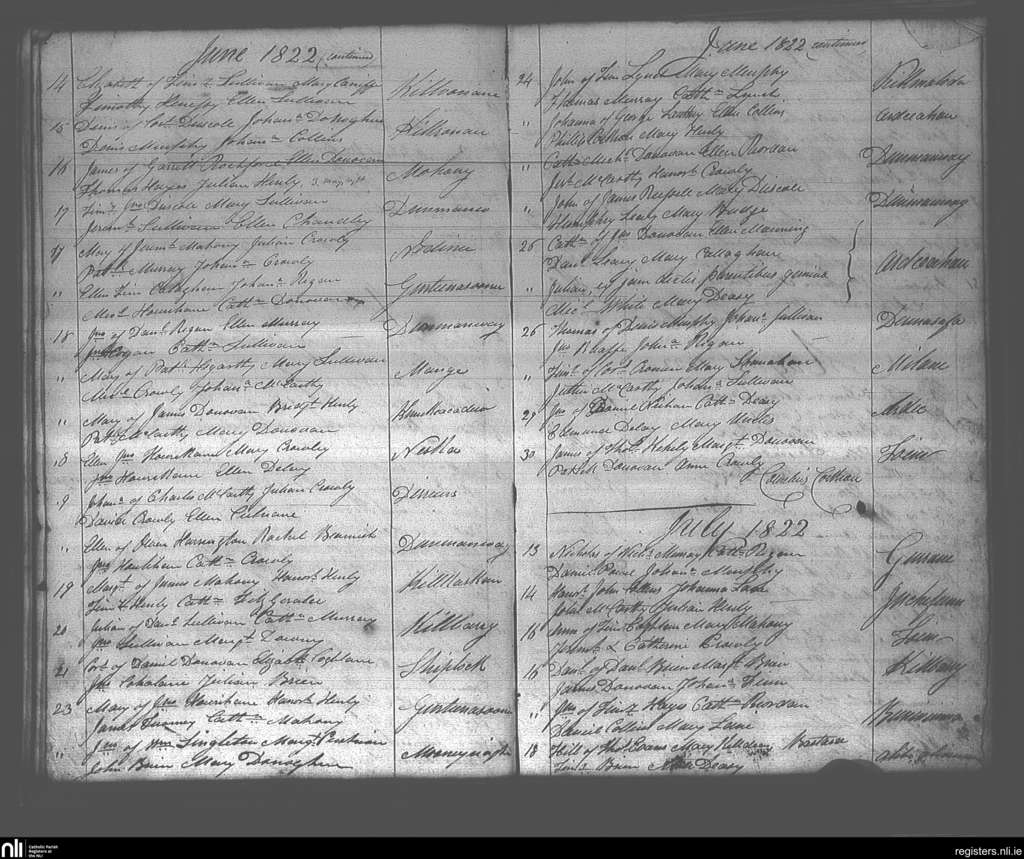 Dunmanway; County of Cork; Diocese of Cork and Ross. Baptisms, June 1822 to July 1822