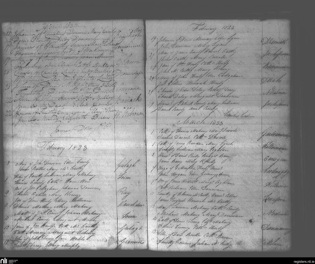 Dunmanway; County of Cork; Diocese of Cork and Ross. Baptisms, Feb. 1823 to Apr. 1823