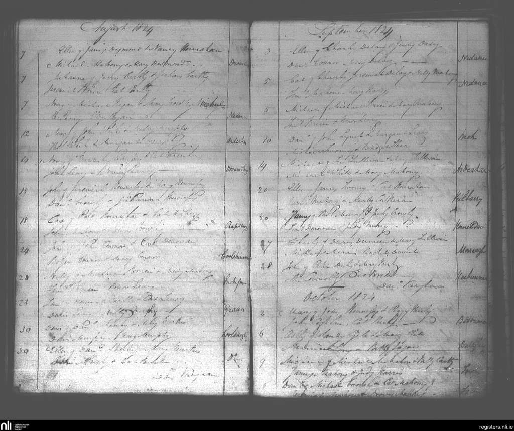 Dunmanway; County of Cork; Diocese of Cork and Ross. Baptisms, Aug. 1824 to Oct. 1824