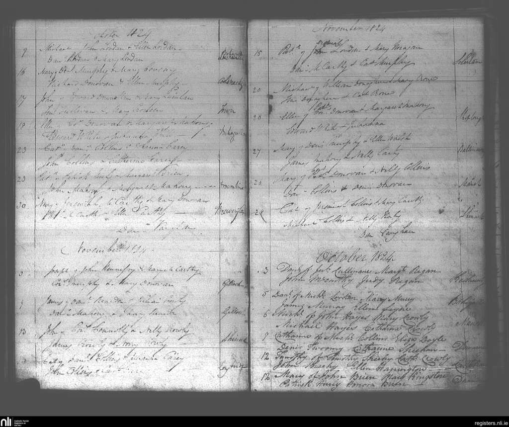 Dunmanway; County of Cork; Diocese of Cork and Ross. Baptisms, Oct. 1824 to Nov. 1824