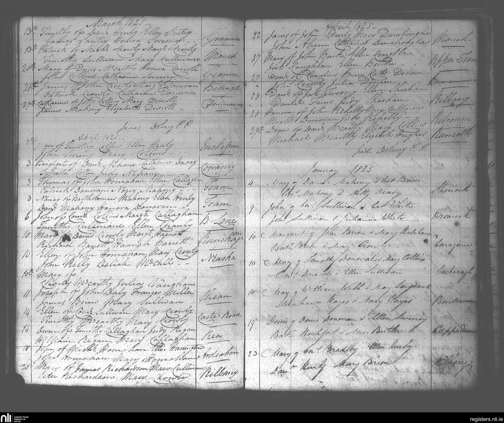Dunmanway; County of Cork; Diocese of Cork and Ross. Baptisms, Jan. 1825 to Apr. 1825