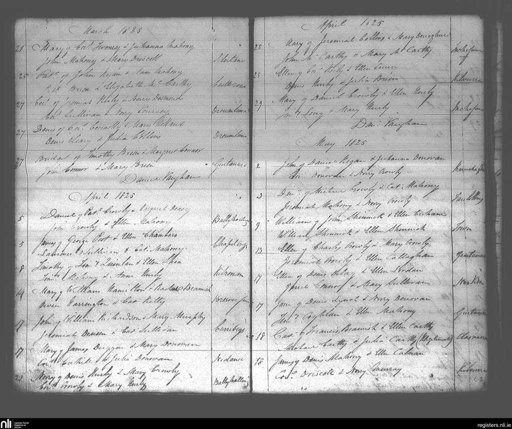 Dunmanway; County of Cork; Diocese of Cork and Ross. Baptisms, Mar. 1825 to May 1825