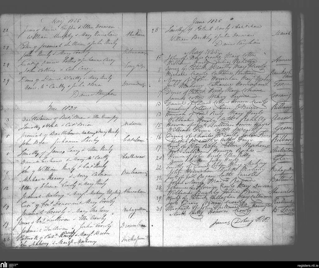 Dunmanway; County of Cork; Diocese of Cork and Ross. Baptisms, May 1825 to June 1825