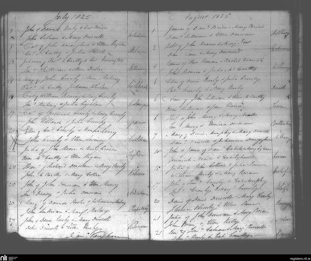 Dunmanway; County of Cork; Diocese of Cork and Ross. Baptisms, July 1825 to Aug. 1825