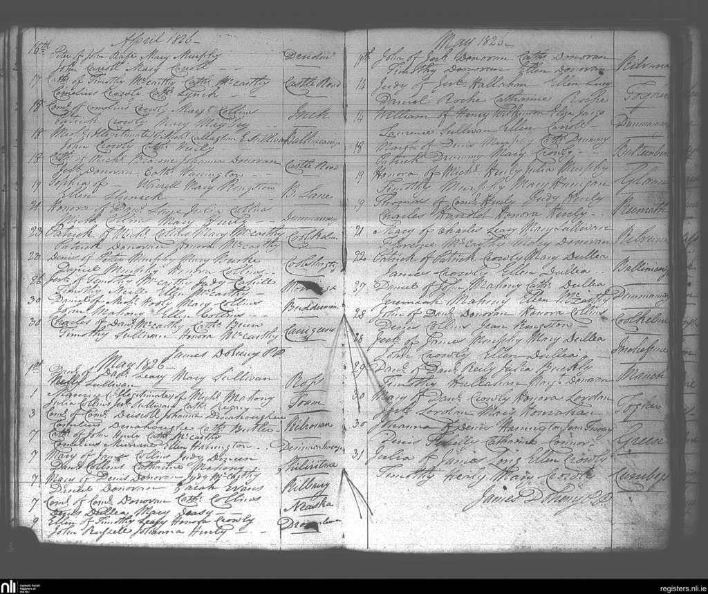 Dunmanway; County of Cork; Diocese of Cork and Ross. Baptisms, Apr. 1826 to May 1826