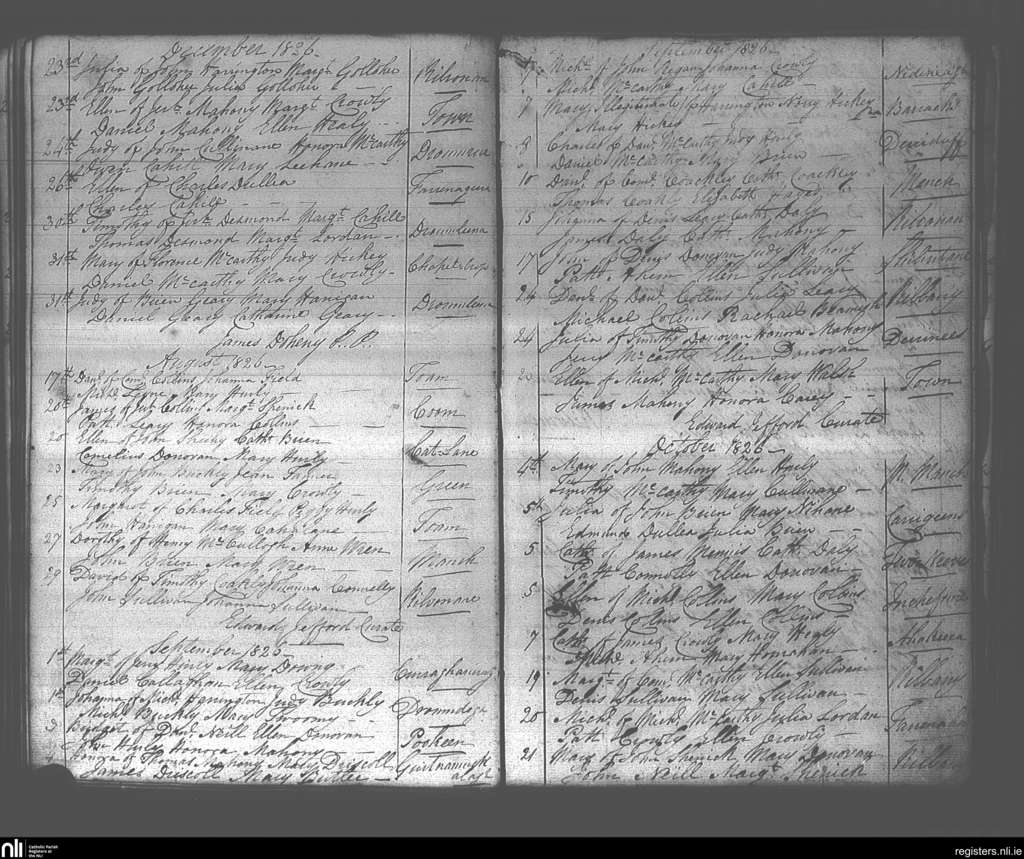 Dunmanway; County of Cork; Diocese of Cork and Ross. Baptisms, Aug. 1826 to Dec. 1826