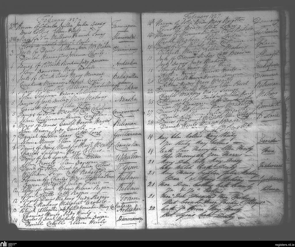 Dunmanway; County of Cork; Diocese of Cork and Ross. Baptisms, Feb. 1827