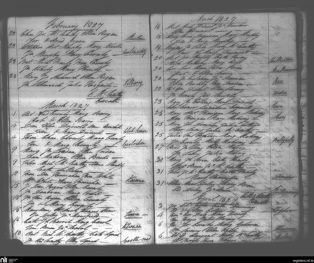 Dunmanway; County of Cork; Diocese of Cork and Ross. Baptisms, Feb. 1827 to Apr. 1827