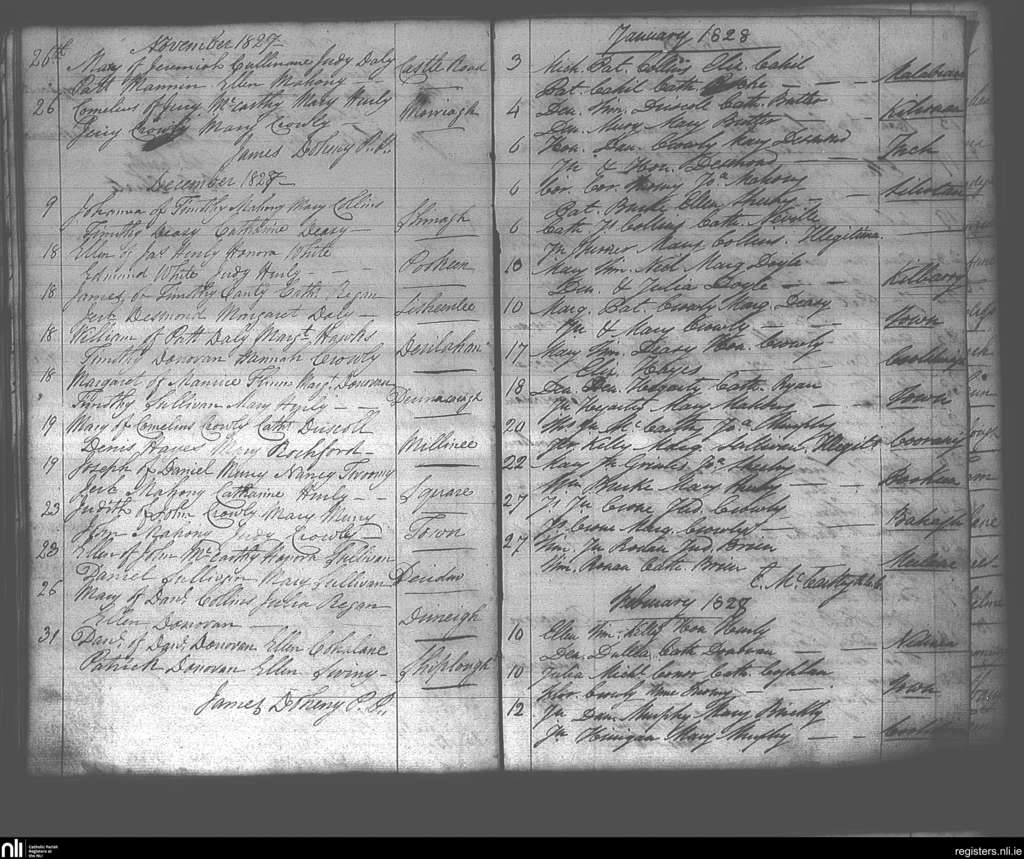 Dunmanway; County of Cork; Diocese of Cork and Ross. Baptisms, Nov. 1827 to Feb. 1828