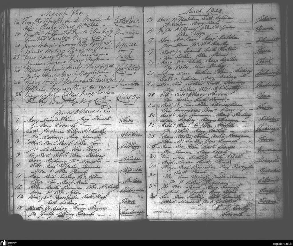Dunmanway; County of Cork; Diocese of Cork and Ross. Baptisms, Mar. 1828