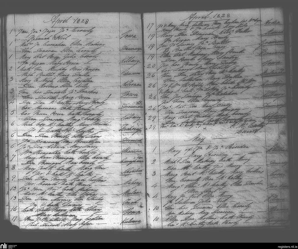 Dunmanway; County of Cork; Diocese of Cork and Ross. Baptisms, Apr. 1828 to May 1828