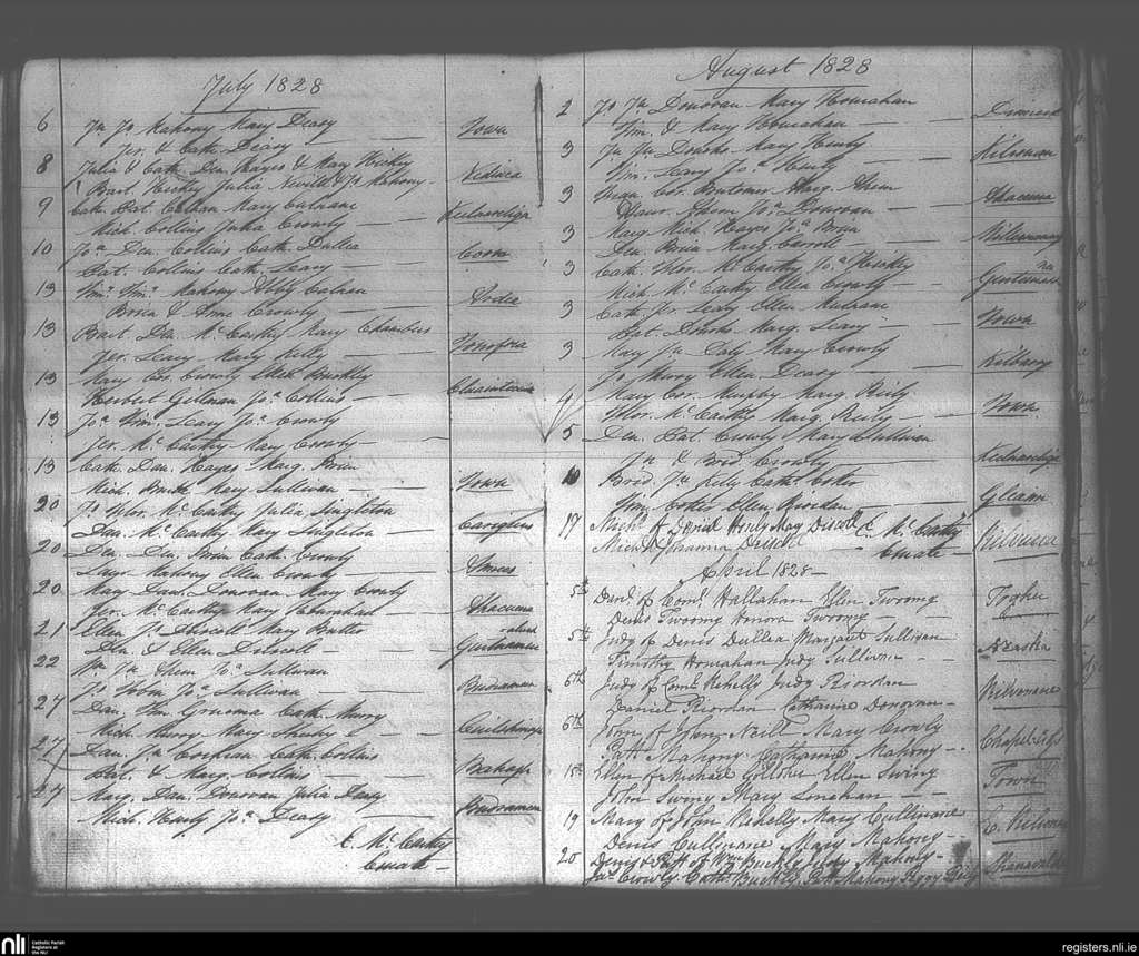 Dunmanway; County of Cork; Diocese of Cork and Ross. Baptisms, Apr. 1828 to Aug. 1828