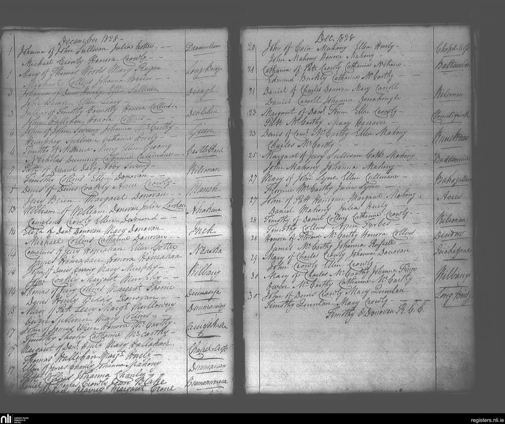 Dunmanway; County of Cork; Diocese of Cork and Ross. Baptisms, Dec. 1828