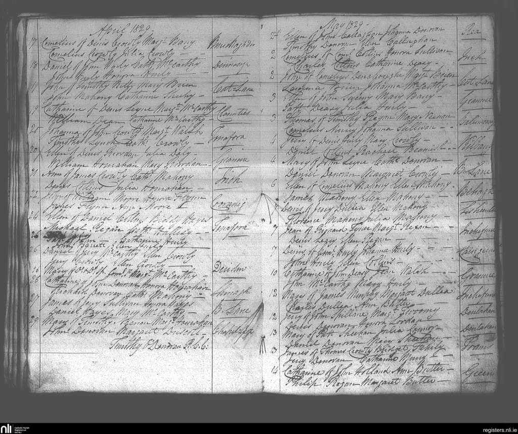 Dunmanway; County of Cork; Diocese of Cork and Ross. Baptisms, Apr. 1829 to May 1829