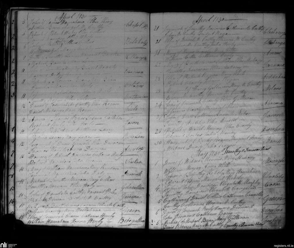 Dunmanway; County of Cork; Diocese of Cork and Ross. Baptisms, Apr. 1830 to May 1830