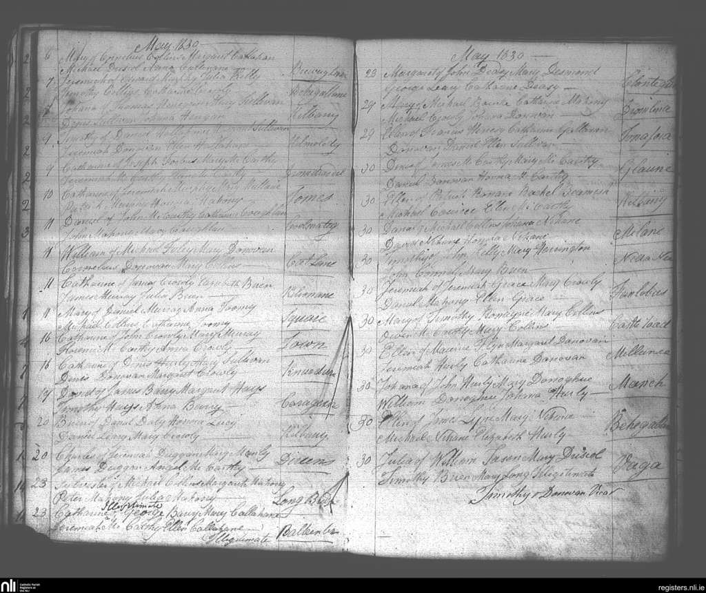 Dunmanway; County of Cork; Diocese of Cork and Ross. Baptisms, May 1830
