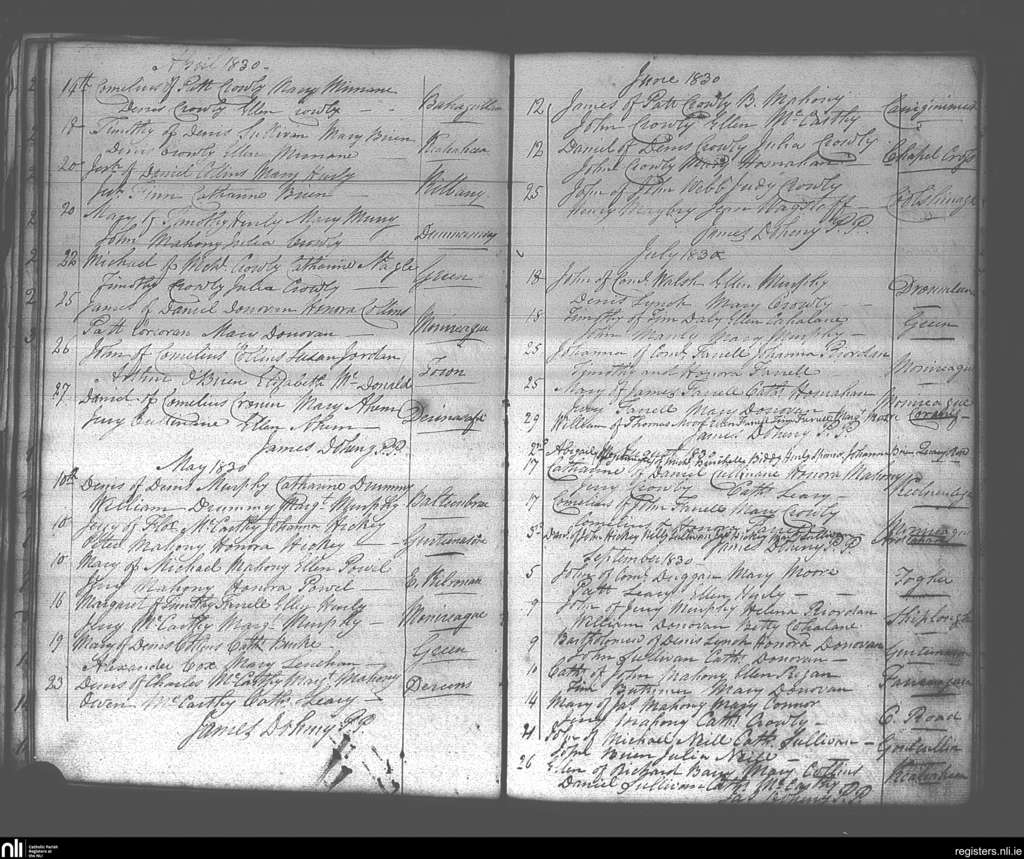 Dunmanway; County of Cork; Diocese of Cork and Ross. Baptisms, Apr. 1830 to July 1830