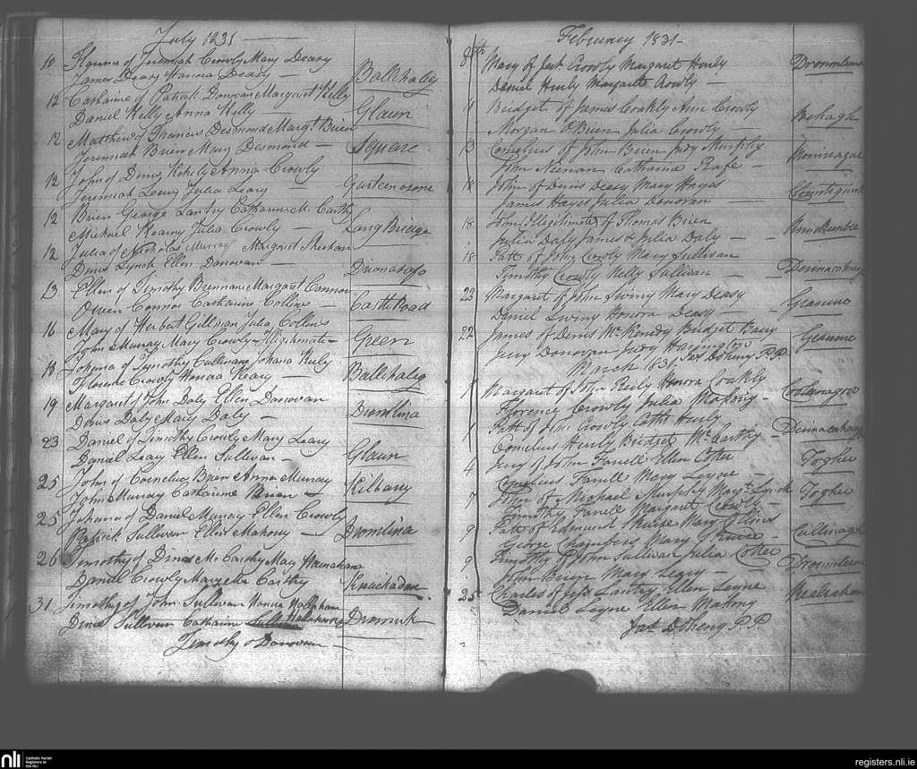Dunmanway; County of Cork; Diocese of Cork and Ross. Baptisms, Feb. 1831 to July 1831