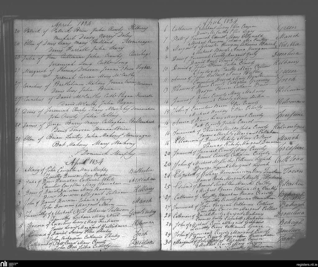 Dunmanway; County of Cork; Diocese of Cork and Ross. Baptisms, Apr. 1834
