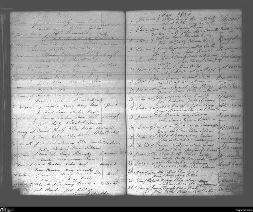 Dunmanway; County of Cork; Diocese of Cork and Ross. Baptisms, May 1834 to Aug. 1834