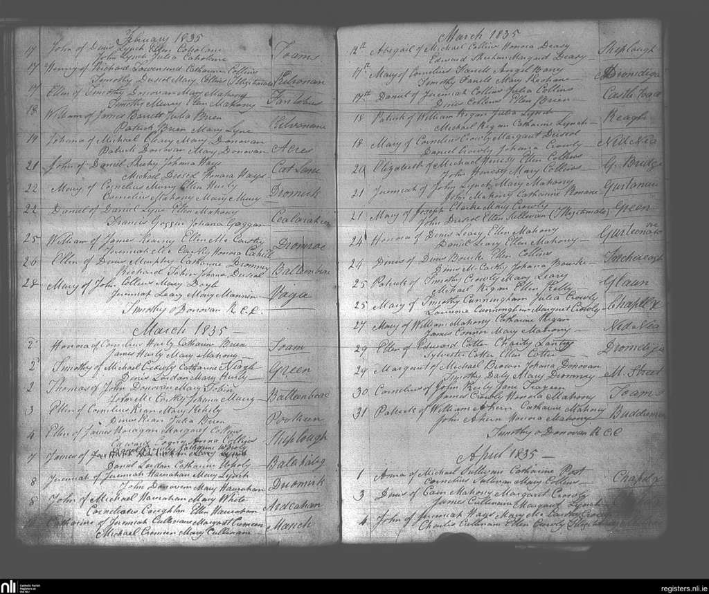 Dunmanway; County of Cork; Diocese of Cork and Ross. Baptisms, Feb. 1835 to Apr. 1835