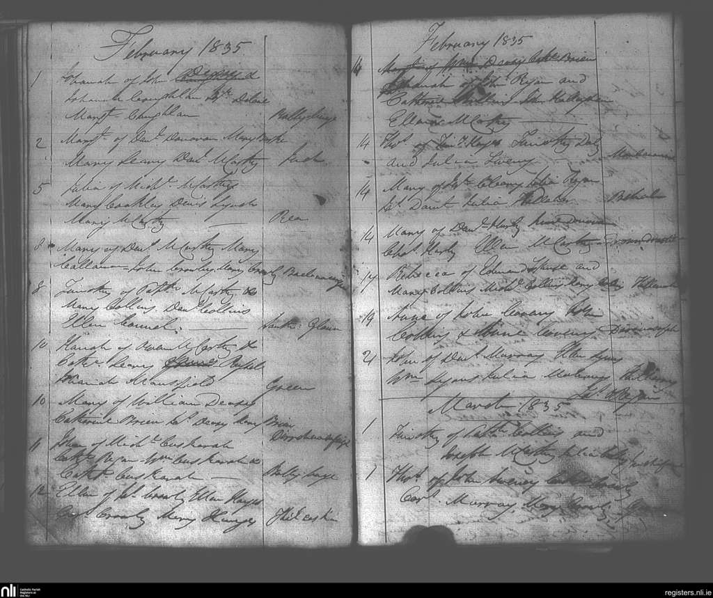 Dunmanway; County of Cork; Diocese of Cork and Ross. Baptisms, Feb. 1835 to Mar. 1835