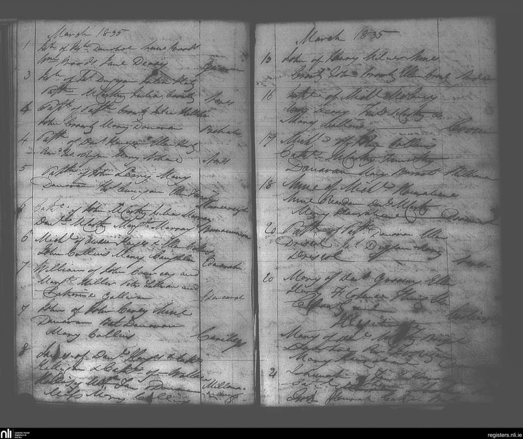 Dunmanway; County of Cork; Diocese of Cork and Ross. Baptisms, Mar. 1835