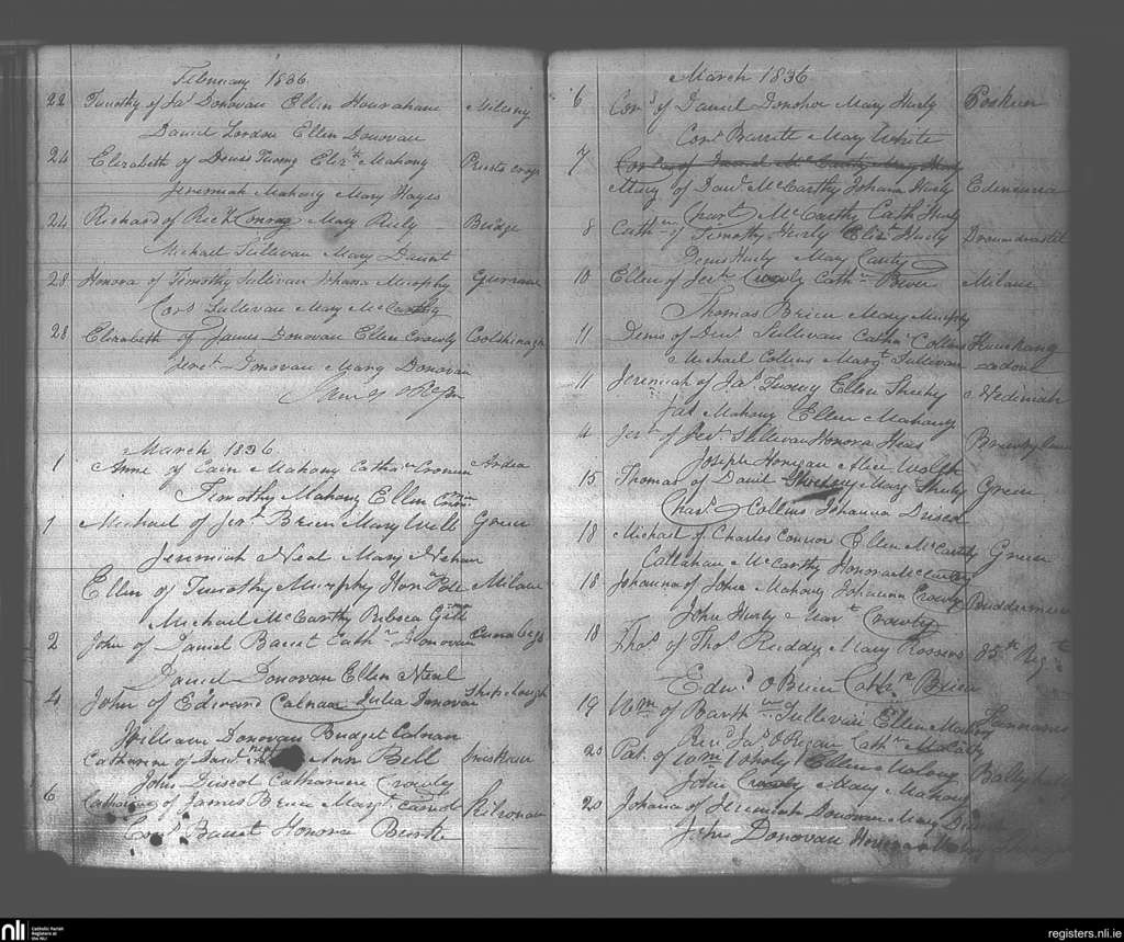 Dunmanway; County of Cork; Diocese of Cork and Ross. Baptisms, Feb. 1836 to Mar. 1836