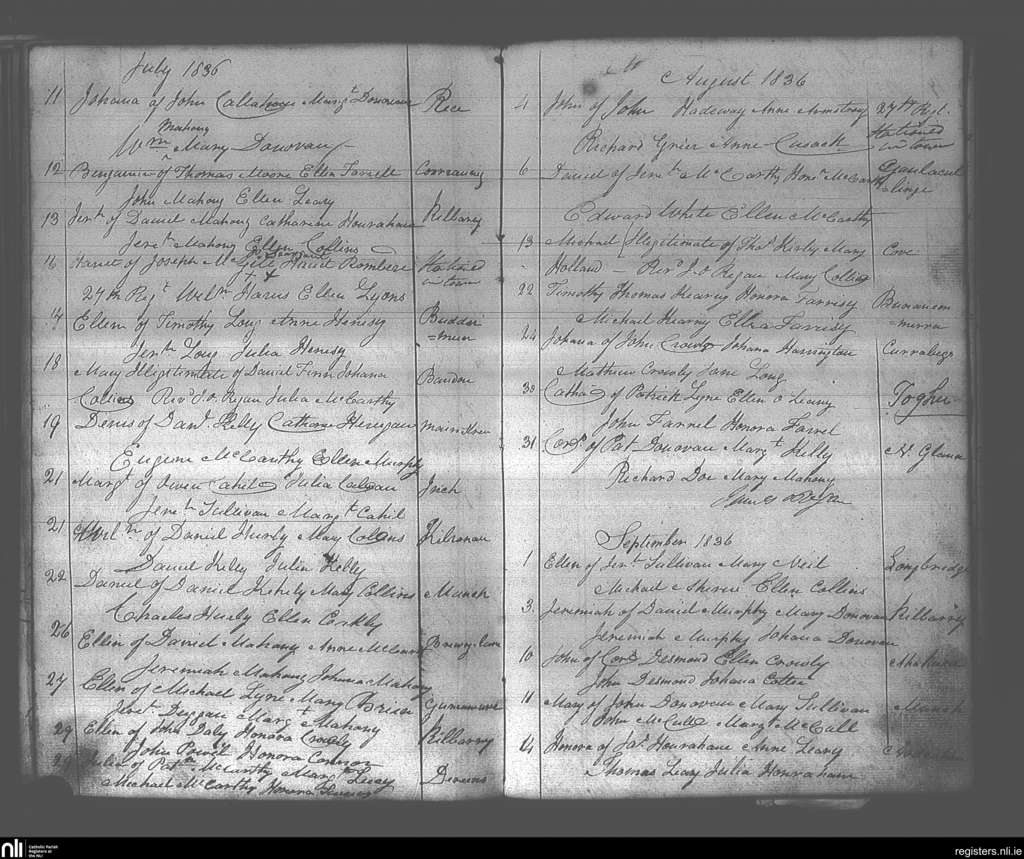 Dunmanway; County of Cork; Diocese of Cork and Ross. Baptisms, July 1836 to Sep. 1836