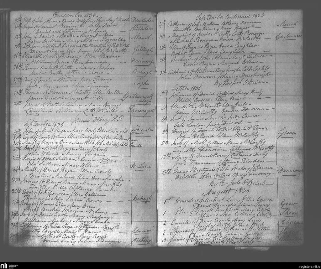 Dunmanway; County of Cork; Diocese of Cork and Ross. Baptisms, Aug. 1836 to Dec. 1836