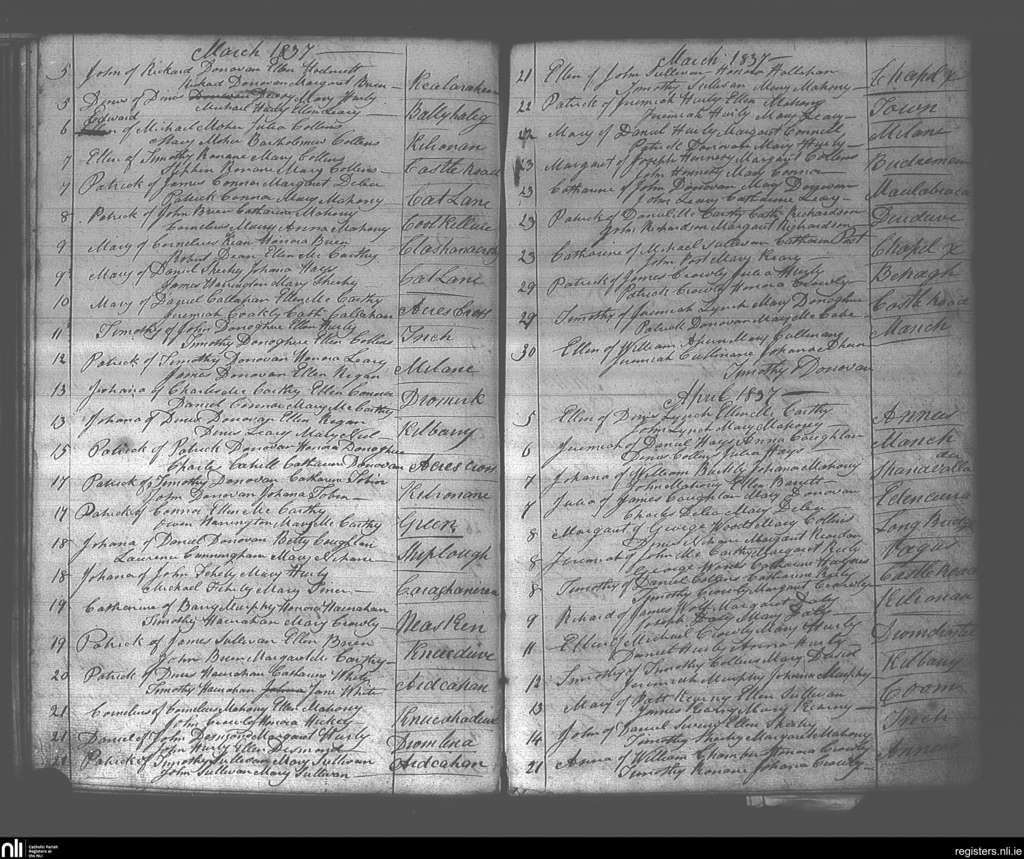 Dunmanway; County of Cork; Diocese of Cork and Ross. Baptisms, Mar. 1837 to Apr. 1837