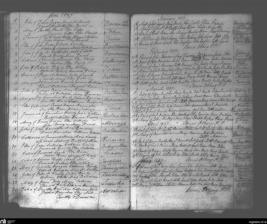 Dunmanway; County of Cork; Diocese of Cork and Ross. Baptisms, Jan. 1837 to June 1837
