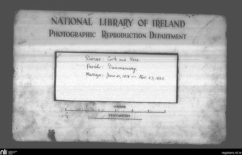 Dunmanway; County of Cork; Diocese of Cork and Ross. Marriages