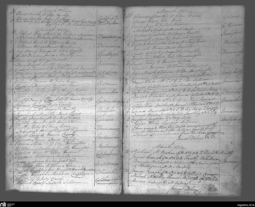 Dunmanway; County of Cork; Diocese of Cork and Ross. Marriages, Mar. 1821