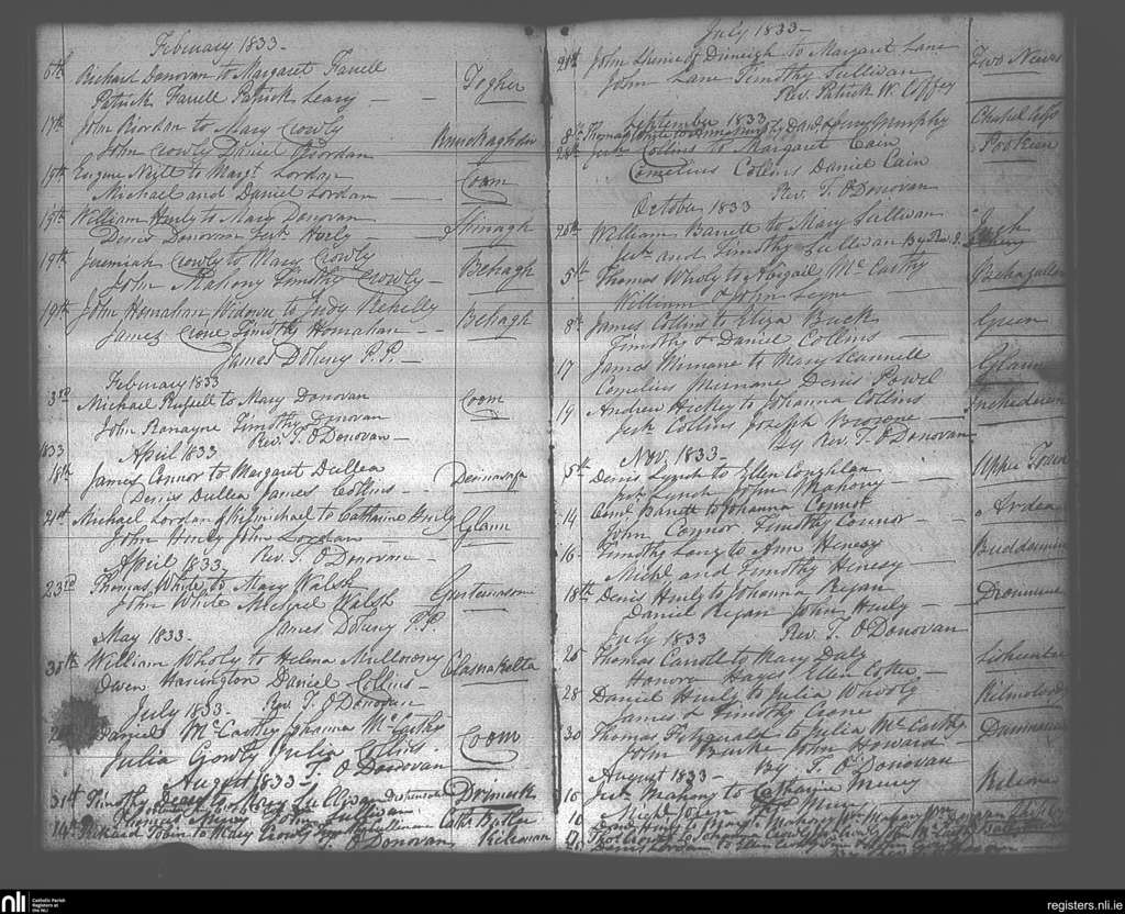 Dunmanway; County of Cork; Diocese of Cork and Ross. Marriages, Feb. 1833 to Nov. 1833