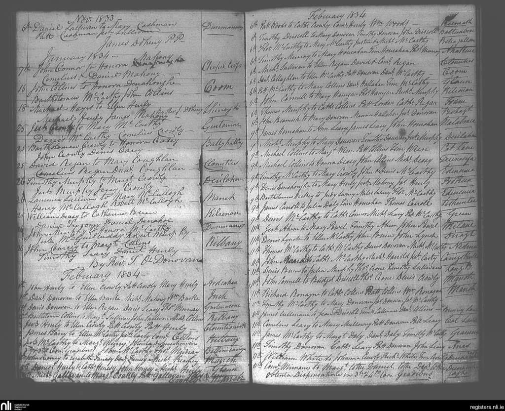 Dunmanway; County of Cork; Diocese of Cork and Ross. Marriages, Nov. 1833 to Feb. 1834