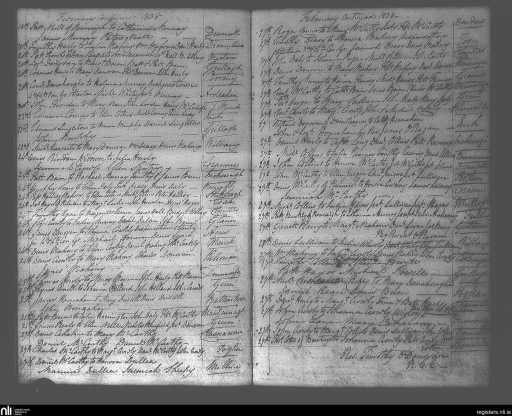 Dunmanway; County of Cork; Diocese of Cork and Ross. Marriages, Feb. 1838