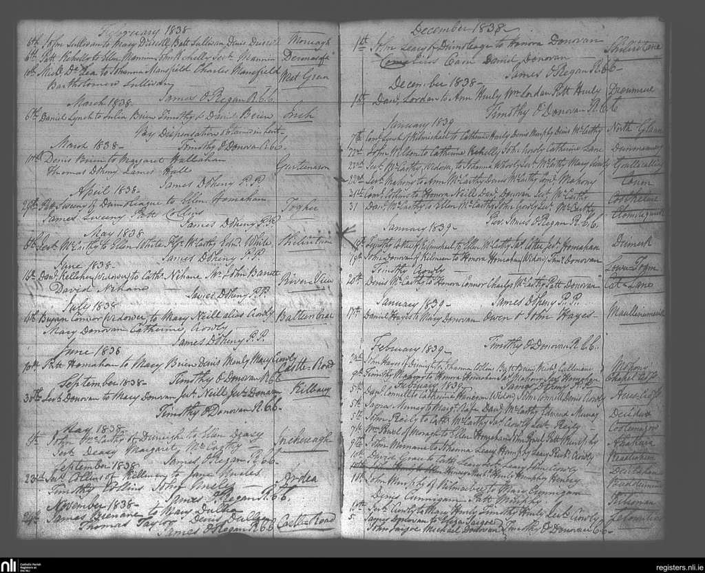 Dunmanway; County of Cork; Diocese of Cork and Ross. Marriages, Feb. 1838 to Feb. 1839